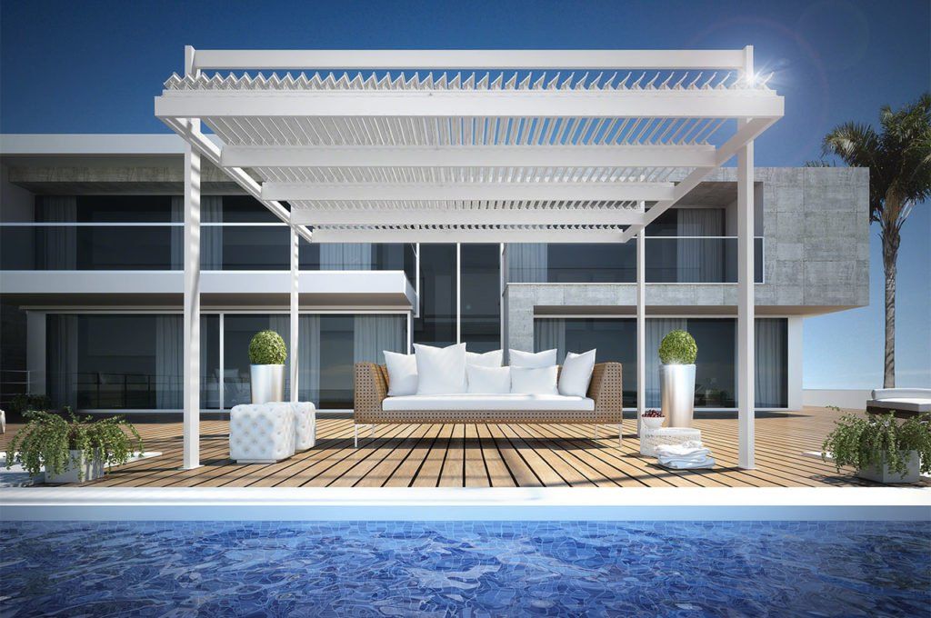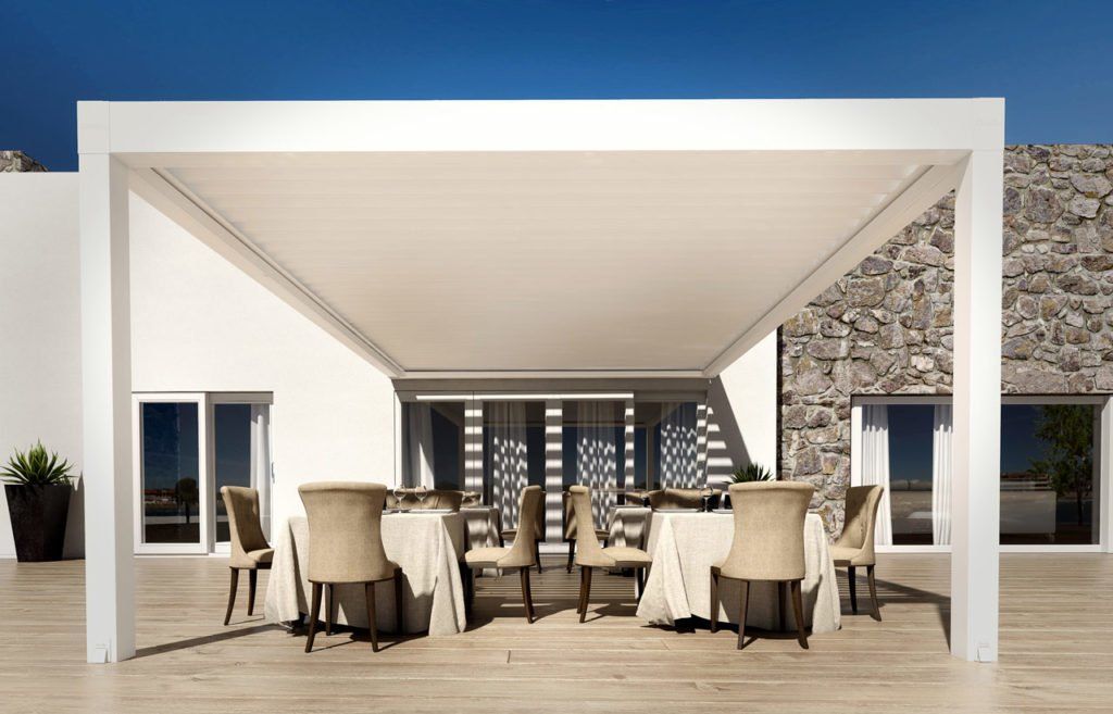Grazie alle lamelle frangisole le pergole bioclimatiche permettono di deviare la luce solare e l’aria controllando la luminosità e la ventilazione per terrazze, cortili, posti auto e aree relax in giardini. Sono pertanto delle soluzioni particolarmente apprezzate e convenienti, che possono essere facilmente installate anche senza la richiesta di autorizzazioni e concessioni edilizie. Durante le stagioni più fredde e umide le pergole bioclimatiche sono in grado di defluire l’acqua con dei pluviali installati nei pali, proteggendo ampi spazi anche nei mesi invernali e autunnali.